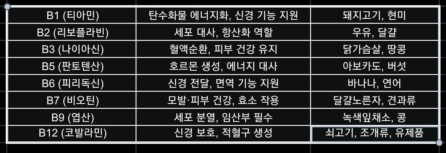 특히 B1, B2, B6가 부족하면, 자고 일어나도 개운하지 않은 피로감이 지속될 수 있어요.